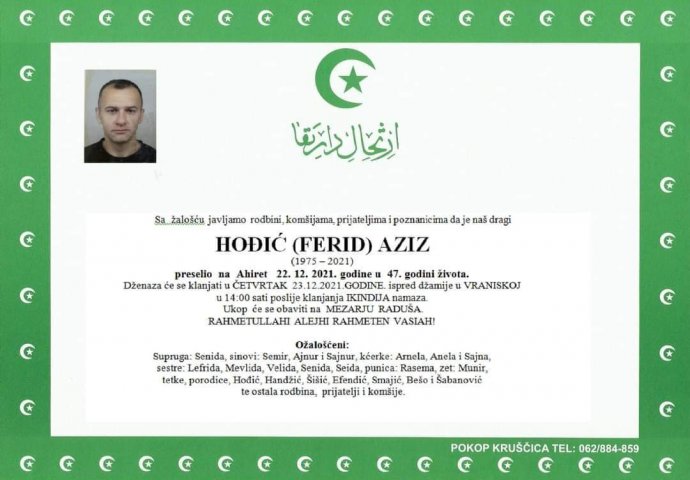 Preminuo je Aziz Hođić iz Viteza. Iza ovog četrdesetsedmo godišnjaka ostala je supruga i šestero djece saznaje portal Crna-Hronika.