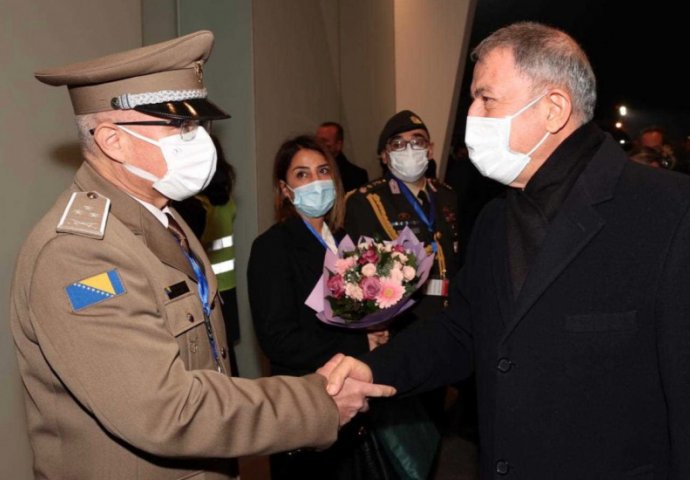 - Ministar nacionalne odbrane Hulusi Akar, koji će boraviti u službenoj posjeti Bosni i Hercegovini i Kosovu, stigao je u Sarajevo. Dočeko ga je ministar odbrane Bosne i Hercegovine Sifet Podžić. Ministar Akar je razgovarao sa svojim kolegom na aerodromu - saopćeno je na stranici turskog ministarstva odbrane.