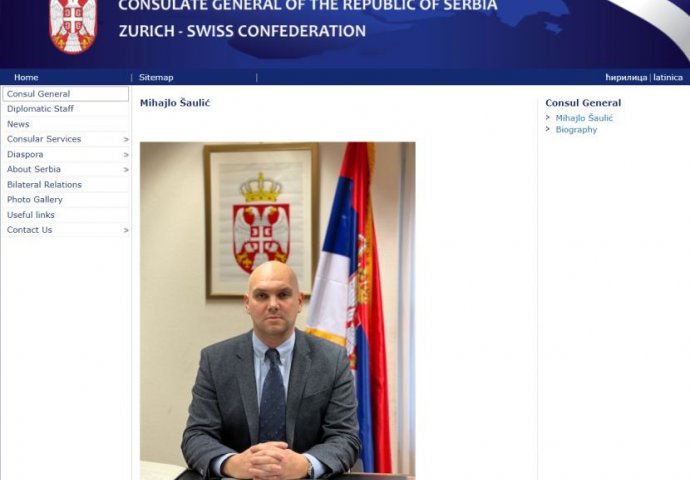 Da je Šaulić generalni konzul u Švajcarskoj potvrđuje i zvanična internet stranica konzulata u Cirihu