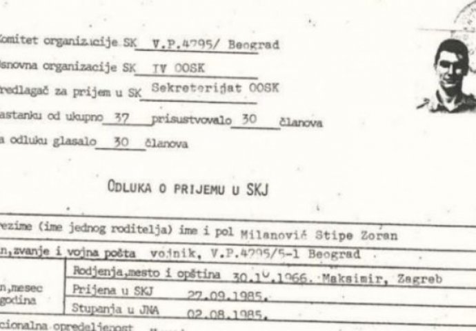 “Poverene zadatke izvršava bez pogovora i savesno. Njegova želja, a ujedno i želja svih nas da drug Milanović Zoran bude primljen u SKJ jednoglasno je podržana“ – piše, među ostalim, u Odluci o prijemu u SKJ”, piše HDZ.