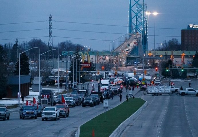 Podsjetimo, kanadski kamiondžije započeli su prosvjede pod nazivom "Konvoj slobode" te okupirali Ottawu u znak protivljenju obaveznom cijepljenju i karanteni. Blokiraju most Ambasador od ponedjeljka, a zatvorili su i dva manja granična prijelaza u provincijama Alberta i Manitoba.