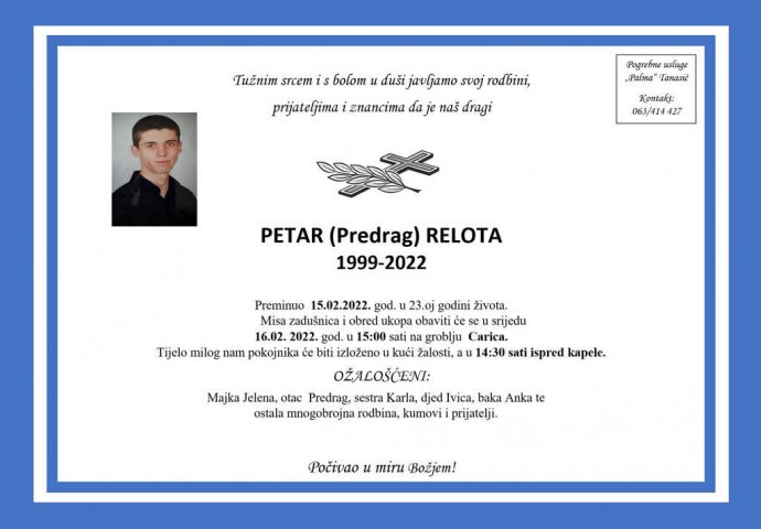 Mladi Busovljak Petar Relota preminuo je u 23. godini.
