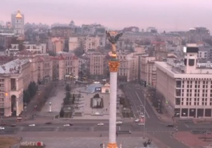 Trg nezavisnosti u Kijevu dok se oglašavaju sirene za vazdušni napad.
