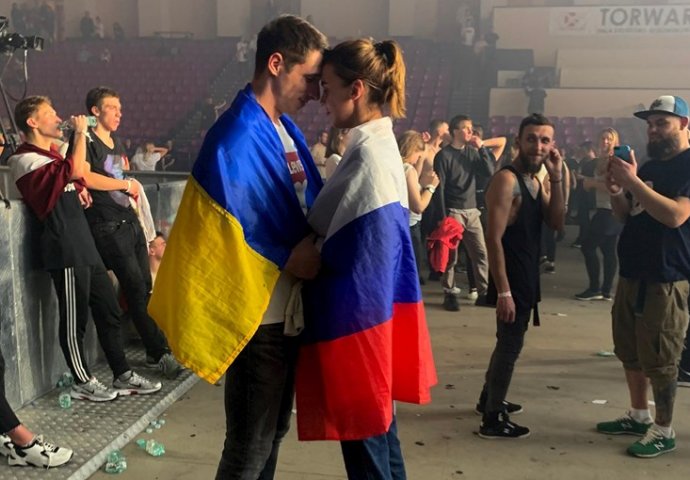 Internetom se danas munjevito širi fotografija para na jednom koncertu. On je ogrnut ukrajinskom zastavom, a ona ruskom i drže se za ruke.