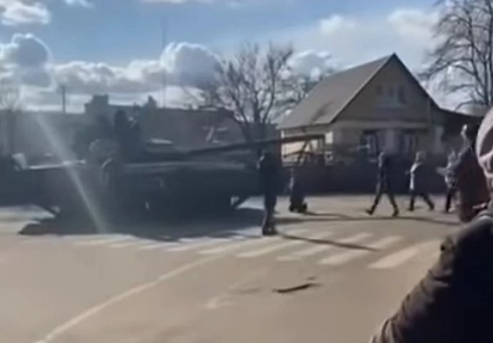 Društvenim mrežama se širi snimak ukrajinskog državljanina koji pokušava zaustaviti tenk svojim tijelom. Ovo je još jedan simboličan čin otpora ruskim napadima.