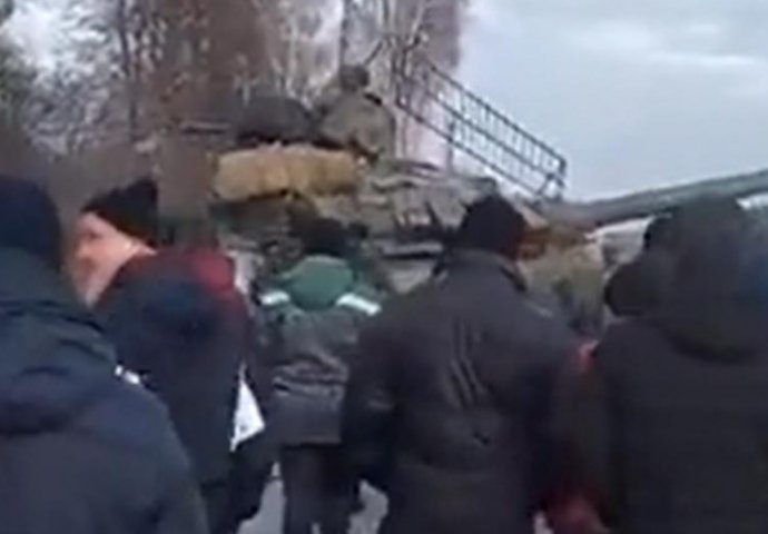 DA SE NAJEŽIŠ! Civili na sjeveru Ukrajine tijelima zaustavili ruski tenk: Stotine ljudi krenuli su hodati prema njemu