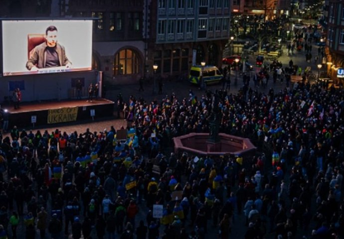 Ukrajinski predsjednik Volodimir Zelenskij večeras se putem Zooma obratio prosvjednicima okupljanima u nizu europskih gradova, koji su izašli na ulice kako bi dali podršku Ukrajini u borbi protiv ruske invazije.