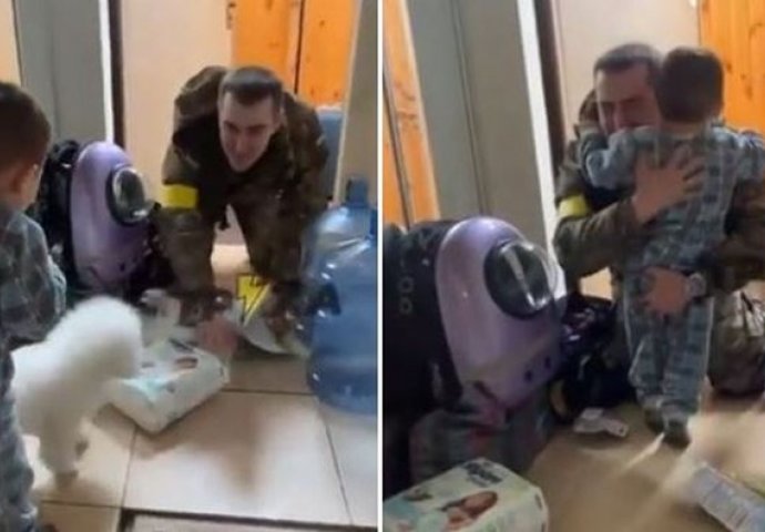 Otac mališana vratio se kući kako bi obitelji dostavio zalihe, a kada ga je dječak ugledao na vratima, odmah mu je potrčao u čvrst zagrljaj.