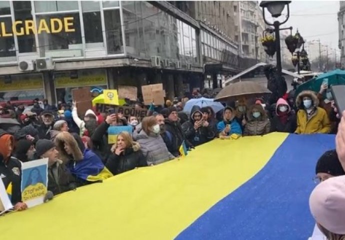 U centru Beograda se održava antiratni skup podrške Ukrajini, a okupilo se nekoliko stotina građana. Neki od njih nose ukrajinske zastave i transparente "Stop Putin, stop war".