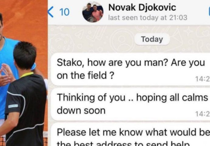 "Staho, kako si čovječe? Da li si na ratištu? Razmišljao sam o tebi. Nadam se da će se situacija smiriti uskoro. Molim te, reci mi koja je najbolja adresa na koju mogu da pošaljem pomoć. Finansijsku ili bilo kakvu drugu", napisao je Novak koji je ovim činom oduševio sve.