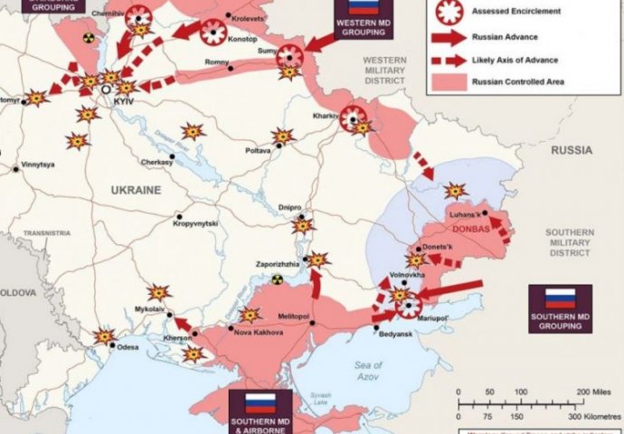 Ministarstvo odbrane Velike Britanije objavilo je na Twitteru novu mapu napada ruskih snaga na Ukrajinu.