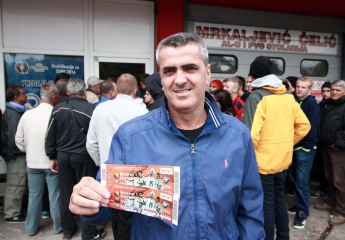 Više od stotinu građana Zenice čekalo je jutros da preuzme svoj par ulaznica za susret reprezentacija Bosne i Hercegovine i Walesa, koji se igra u Zenici u subotu, 10. oktobra 2015. godine u sklopu kvalifikacija za Evropsko prvenstvo u Francuskoj 2016. godine, javlja Anadolu Agency (AA).
