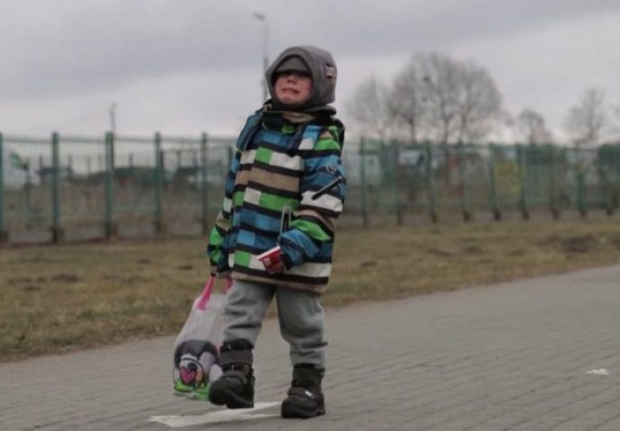 Dječak je sam i dok hoda plače, a jedino što ima je zimska jakna i plastična kesa u kojoj nosi svoje stvari. Djeluje nevjerovatno maleno na tom pločniku, hodajući odvojeno od drugih porodica koje su izbjegle iz Ukrajine, piše CNN.