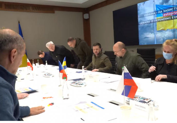 Ukrajinski predsjednik Volodimir Zelenski objavio je na svojoj Facebook stranici snimak susreta sa premijerima Slovenije, Poljske i Češke.