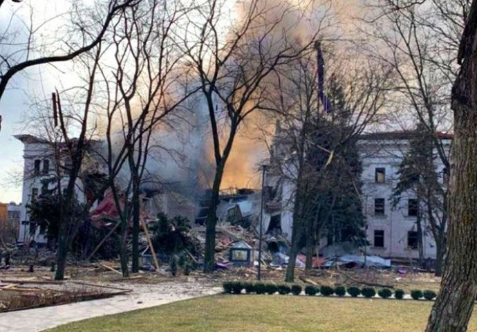Sudbina stotina ljudi koji su se sklonili u kazalište u obalnom gradu Mariupolju nepoznata je nakon što su ruske granate pale na zgradu, kraj koje je na zemlji stajala riječ "djeca" kako bi se odbili napadi. Još jedno bombardiranje pogodilo je bazen u istom gradu koji se koristio kao sklonište.