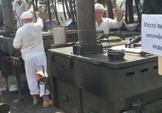 2. Vojni kuhari pripremaju obroke napolju u velikim kazanima koji su dopremljeni iz Rusije.