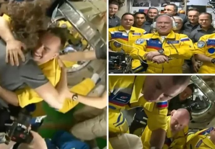 “Letačka odijela nove posade izrađena su u bojama amblema Moskovskog državnog tehničkog sveučilišta Bauman, na kojem su diplomirala sva tri kozmonauta… Vidjeti ukrajinsku zastavu posvuda i u svemu je ludo”, dodaje se.