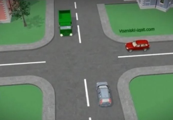 Zato vam mi danas donosimo jednu običnu raskrsnicu sa 3 auta, i ovdje trebate da odgovorite koje auto ima prednost na ovakvim mjestima.