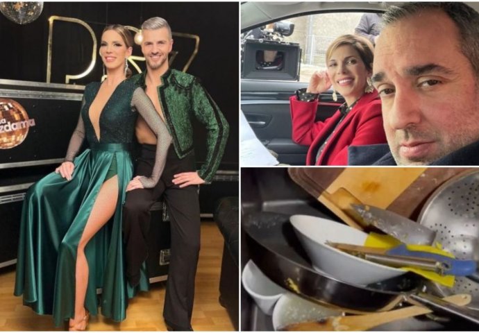 Enes je snimio ekran televizora na kojem je bila nasmiješena Bojana kako bi pokazao da bodri i prati suprugu, a zatim je kameru okrenuo prema sudoperu, u kojem se nalazila hrpa prljavog suđa.