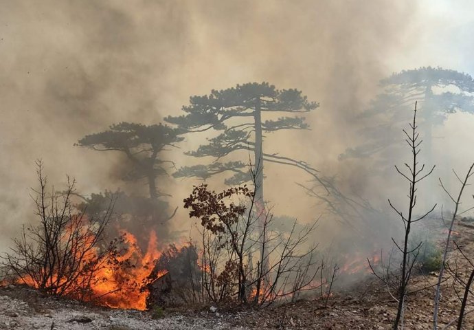 Požar nastao nemarom lokalnog stanovništva širi se netipično velikom brzinom za ovo doba godine i poprima sve karakteristike ekološke katastrofe, već je zahvatio i krošnje borova te polako prelazi u visoki požar.