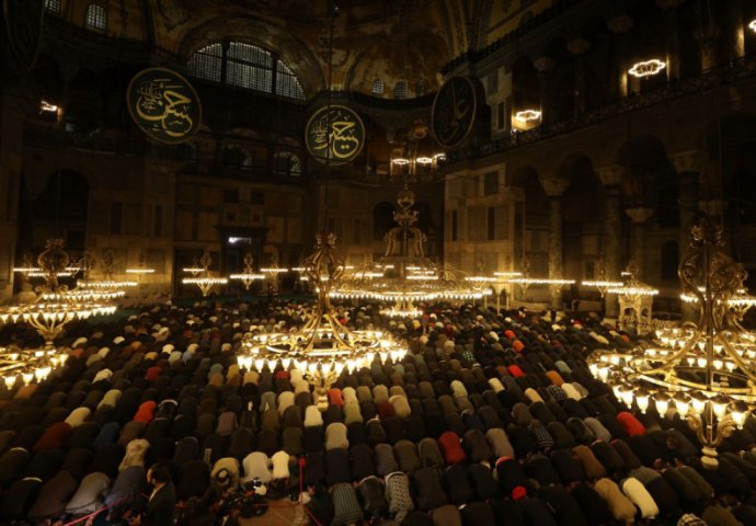 Nakon 88 godina u džamiji Aja Sofija u Istanbulu večeras je klanjan teravih-namaz, javlja Anadolija.