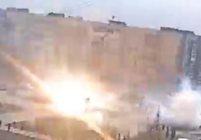 Snimke iz okupiranog ukrajinskog grada Enerhodara pokazuju eksplozije i oblake bijelog dima na trgu tijekom prosvjeda Ukrajinca protiv ruskih snaga koje su zauzele grad.