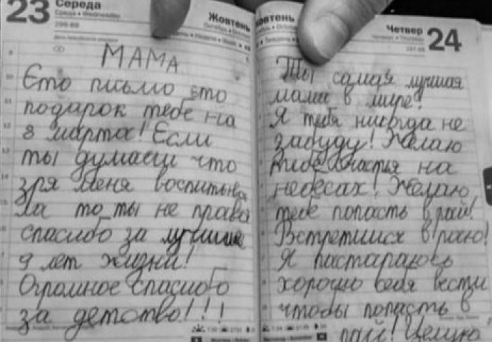 “Mama, hvala ti za najboljih devet godina mog života! Veliko ti hvala za moje djetinjstvo! Nikada te neću zaboraviti! Obećajem ti da ću biti dobar kako bismo se jednoga dana mogli sresti sresti u raju”, napisao je devetogodišnji dječak iz Ukrajine.