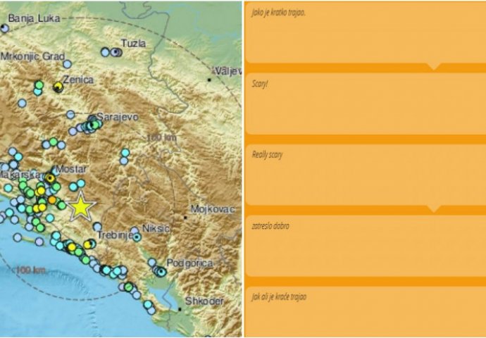 Ponovo snažan zemljotres kod Stoca, osjetio se i u Sarajevu, Tuzli, Zenici, Trebinju, Bihaću...