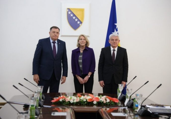 “Nije tačna izjava Karen Donfried da rukovodstvo Republike Srpske želi da sruši BiH. Poštujemo Ustav da je BiH sastavljena od dva entiteta i tri konstitutivna naroda. Sve što je urađeno mimo Ustava mora da bude stvar diskusije. Nema plana ni dokumenta kojim bi se potkrijepile te tvrdnje”, naveo je Dodik na Twitteru.