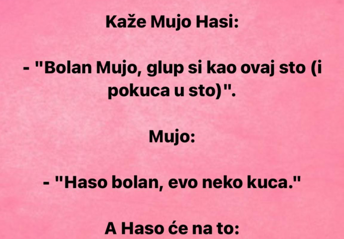 - "Bolan Mujo, glup si kao ovaj sto (i pokuca u sto)".