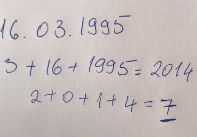 Računate ovako: 3 + 20 + 1950 = 1973, dalje broj koji ste dobili, opet sabirate 1 + 9 + 7 + 3 = 20, sada imate dvije cifre, a cilj je da dobijete jednu, pa saberite i te dvije 2 + 0 = 2. Dakle, konačan broj je 2, u ovom primjeru.