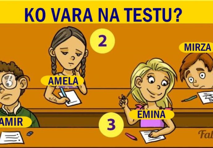 Ova mozgalica izgleda jednostavno, ali zapravo je nije tako jednostavno riješiti. Vaš zadatak je da, na osnovu slike, zaključite koji student prepisuje na ispitu.