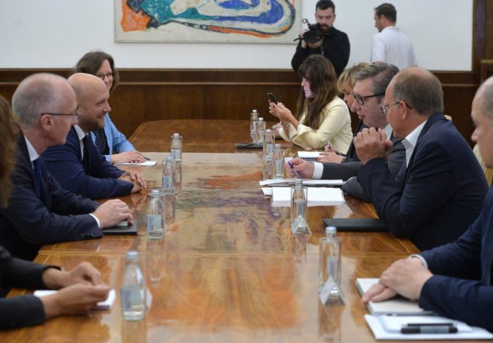 Predsjednik Srbije Aleksandar Vučić održao je danas sastanak sa njemačkim specijalnim izaslanikom za zapadni Balkan Manuelom Sarrazinom. Na njemu je, između ostalog, jedna od tema bila i Bosna i Hercegovina, pa je Vučić sagovorniku saopštio da se Srbija "zalaže za punu i dosljednu primjenu Dejtonskog sporazuma i da se protivi nametnutim rješenjima koja nemaju saglasnost sva tri konstitutivna naroda u BiH".