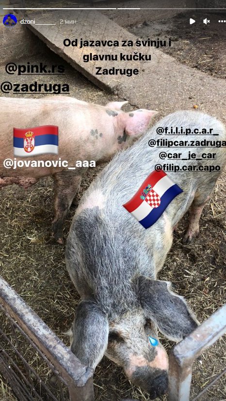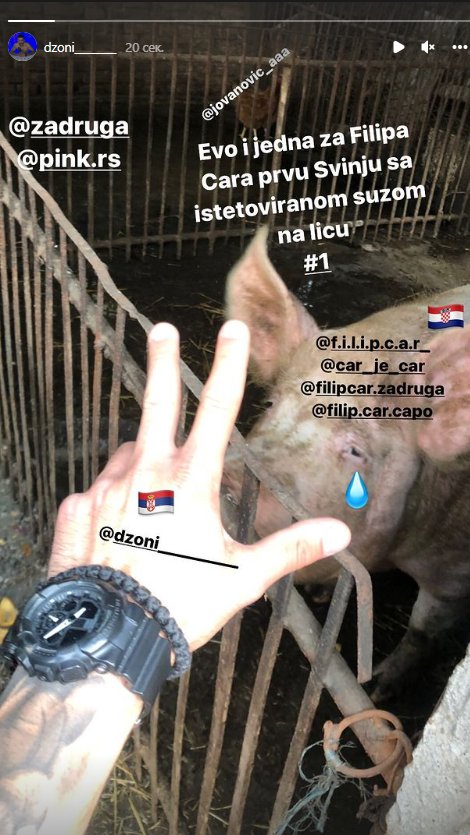 Ovom prilikom smo kontaktirali Nikolu Ilića, Aninog bivšeg momka, koji je odlučio da se oglasi putem svog Instagram profila, te je tom prilikom javno prozvao svoju bivšu i Cara poredivši ih sa svinjama. Naime, on je fotografisao svinje, pa je na tim fotkama pisao tekst u kom je opleo po njima.