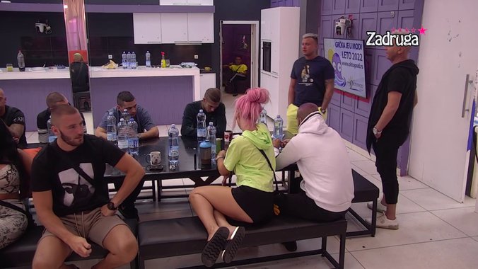 U toku je emisija "Gledanje snimaka", a voditelj Milan Milošević najavio je zadrugarima naredni klip, na kom su imali priliku da vide svađu Dejana Dragojevića i Aleks Nikolić oko odlaska kraj bazena gdje se nalazila Dalila Dragojević.