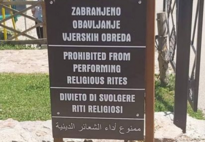 Odnosi se na zabranu obavljanja vjerskih obreda, a napisana je čak na tri jezika – bosanskom, italijanskom i arapskom.