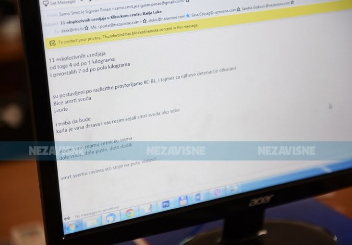 Takva poruka stigla je i na adresu  redakcije “Nezavisnih novina” i sve  je odmah prijavljeno policiji.