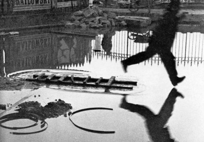 Fotografija je nastala 1932. godine i ovo je najgledanija fotografija nastala u tačnom određenom momentu. Njen autor je francuski fotograf Henri Kartije Breson, a u uhvatio je moment kada je čovjek sa merdevina upao u veliku baru.