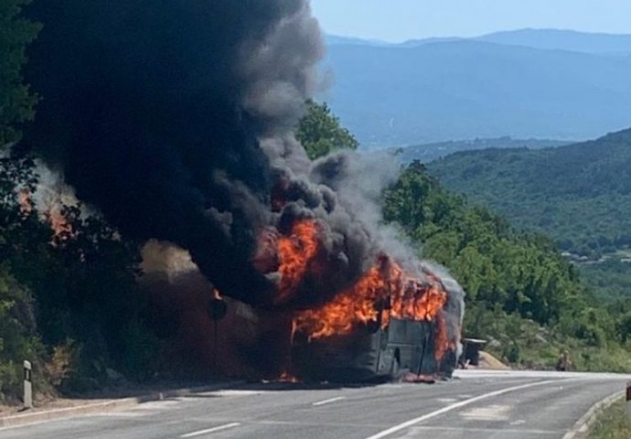 Autobus koji je prevozio učenike iz Širokog Brijega na ekskurziju u Hrvatsku, zapalio se tokom vožnje na cesti D-76 kod Imotskog.