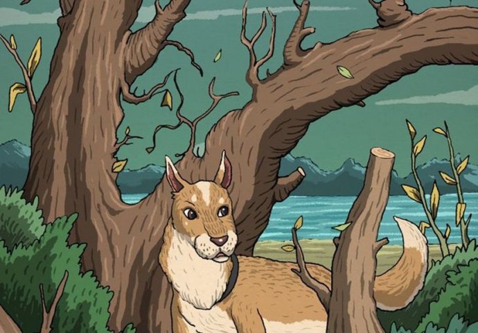 Na ovoj ilustraciji nalazi se pas i stoji ispred drveta, ali izazov je pronaći mačku koja se takođe nalazi na ilustraciji.