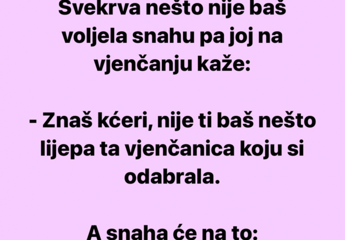 Svekrva nešto nije baš voljela snahu pa joj na vjenčanju kaže: