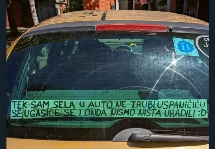 Kako se može vidjeti, na zadnjem staklu automobila vozačica je postavila zanimljivu poruku upućenu svim vozačima koji budu, kako kaže, trubili za vrijeme vožnje.