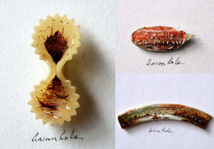 Ima misiju pronaći najmanje"platno" i onda napraviti zadivljujuća umjetnička djela Arhitektura i dizajn 13.10.15. 18:34 Ovaj umjetnik voli izazove. Tako da je odlučio od običnih predmeta i hrane kreirati prava umjetnička remek djela. Slika 4.