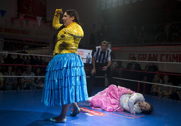 Žene se hrvaju, pa još u haljinama - Pogledajte kako to izgleda (FOTO) Zanimljivosti 14.10.15. 12:27 U Madridu je održano takmičenje u hrvanju za žene iz Bolivije u tradicionalnim šarenim haljinama. Slika 1