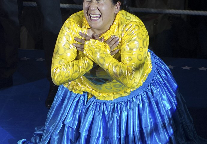 Žene se hrvaju, pa još u haljinama - Pogledajte kako to izgleda (FOTO) Zanimljivosti 14.10.15. 12:27 U Madridu je održano takmičenje u hrvanju za žene iz Bolivije u tradicionalnim šarenim haljinama. Slika 4