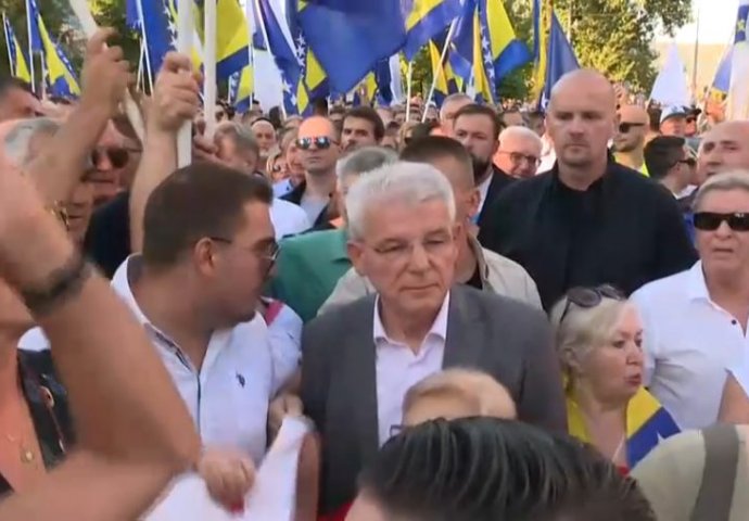 Ipak, Džaferović je uspio da pošalje poruku visokom predstavniku Christianu Schmidta iako su se sve vrijeme čuli zvižduci određene grupe demonstranata koj isu bili protiv govora političara.