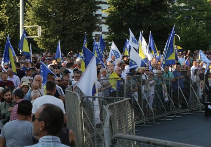 -Iza toga stoje lobiji od hrvatskog premijera Plenkovića do američkog sekretara Blinkena. Ovim protestima šaljemo im poruku da se ne igraju sa BiH. Nemojte nas dijeliti, nećete uspjeti u namjerama.