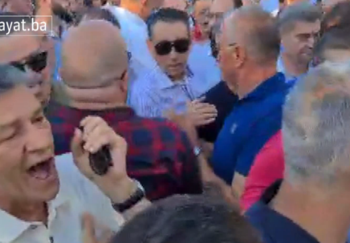 Dovoljno je samo da pogledate samo mali dio dernjave Kasumovića, pratite izraz na njegovom licu… Vidjevši da njemu i sličnima nema spasa, te da će se na zahtjev organizatora građanima ipak obratiti Šefik Džaferović, Kasumoviću nije preostalo ništa drugo nego da pusti avaz i počne huškati ljude oko sebe.