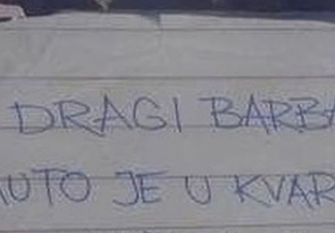 "Dragi barba pauk, auto je u kvaru i čeka mehaničara. Molim vas, nemojte ga odnijeti. Hvala puno, studentica (sirota)", napisala je.