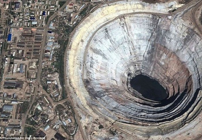 Ove fotografije su pravi dokaz koliko smo u opasnosti Zanimljivosti 16.10.15. 09:08 Slike sve govore, budući da smo ostali bez riječi… 13. Rudnik Mir u Rusiji, najveći rudnik dijamanata na svijetu. Photo: Google Earth/ 2014 Digital Globe